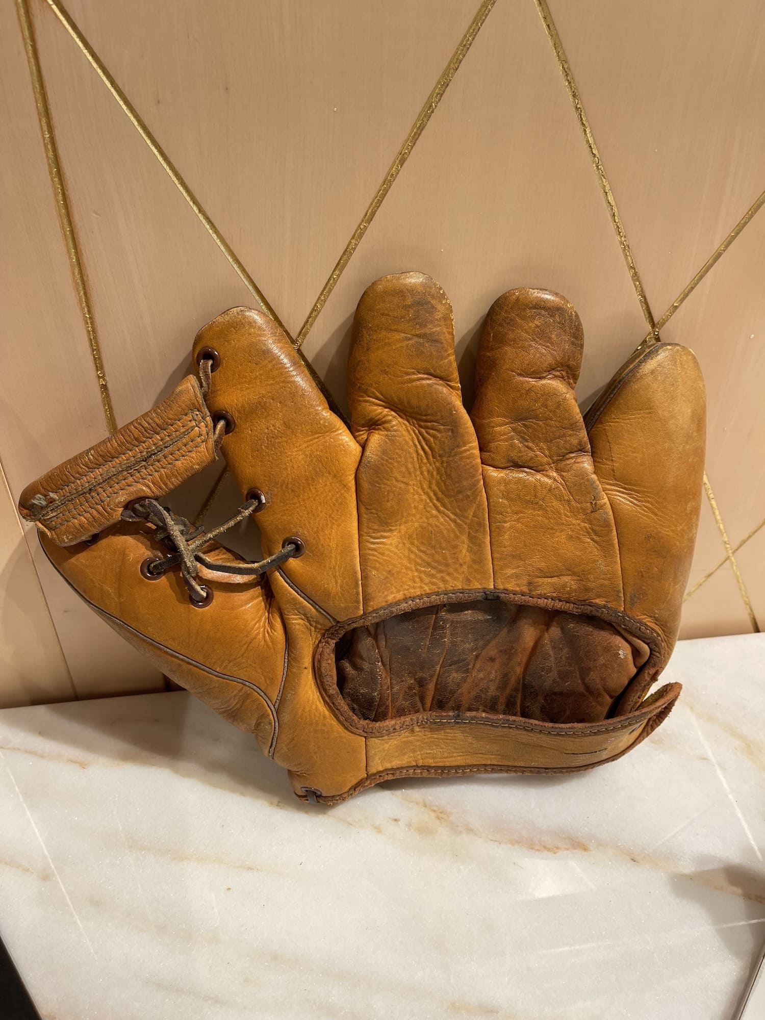 Guantone da baseball in pelle vintage, anni ’60 circa.