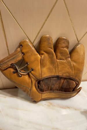 Guantone da baseball in pelle vintage, anni ’60 circa.