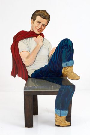 KATHY CALLAHAN © (Massachusetts, 1969) Sedia in legno dipinto raffigurante “JAMES DEAN”. Firmata e datata 1989 sul retro. Lievi segni di usura del tempo.